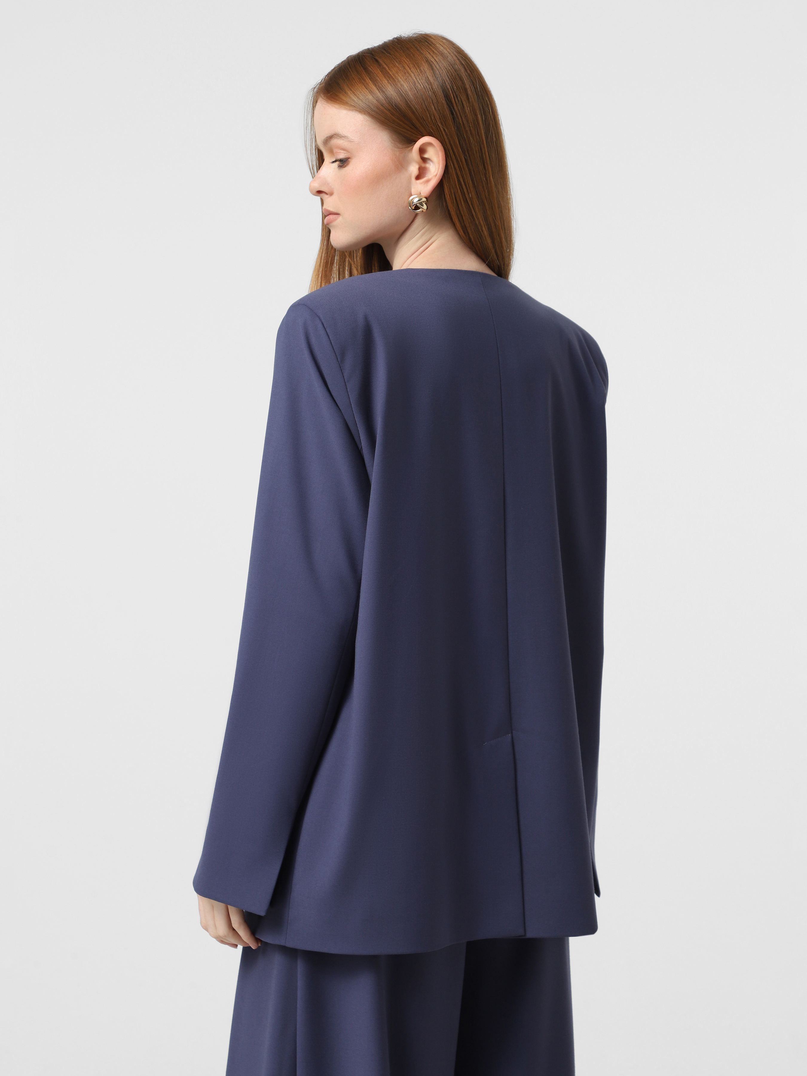 Сливовий жакет без лацканів з костюмної тканини