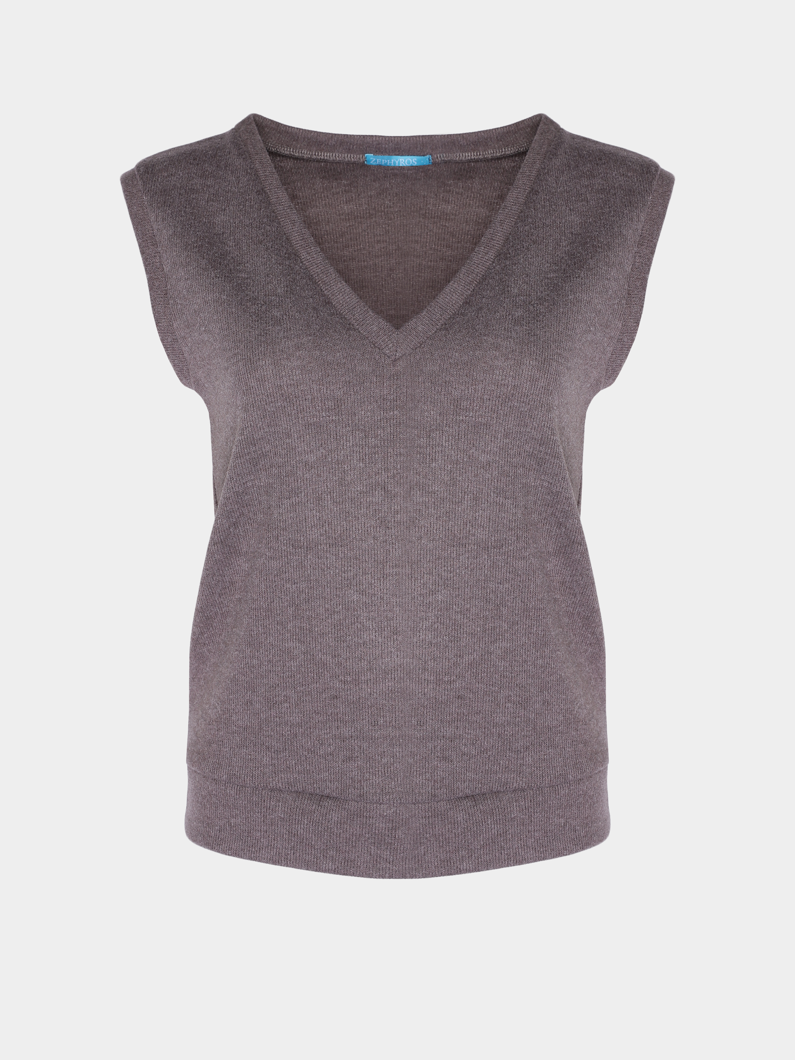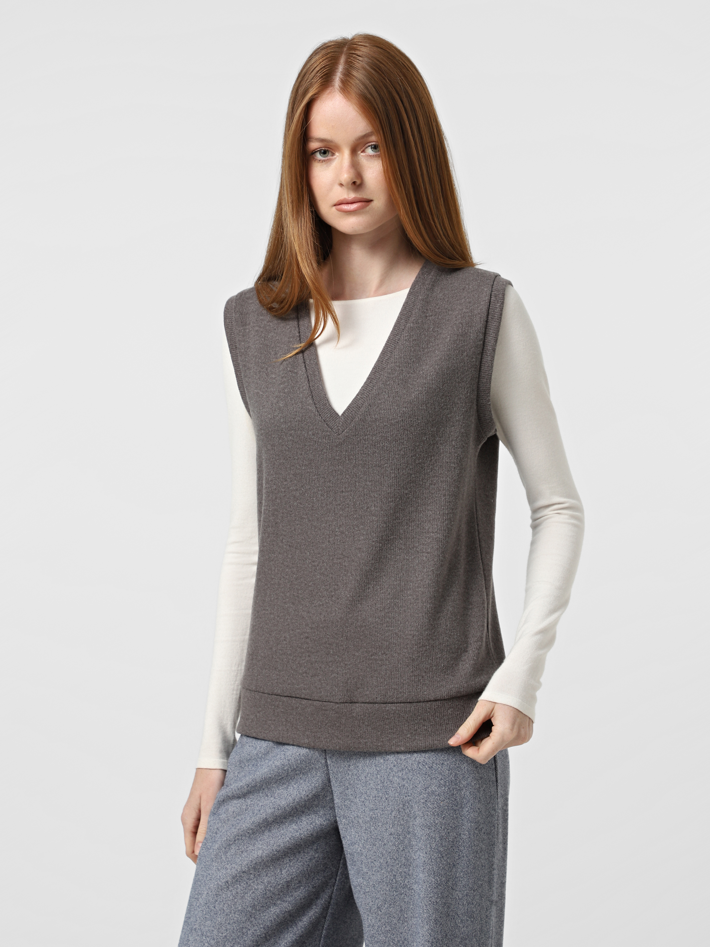 Теплий трикотажний жилет з v-подібним вирізом, сірого кольору.