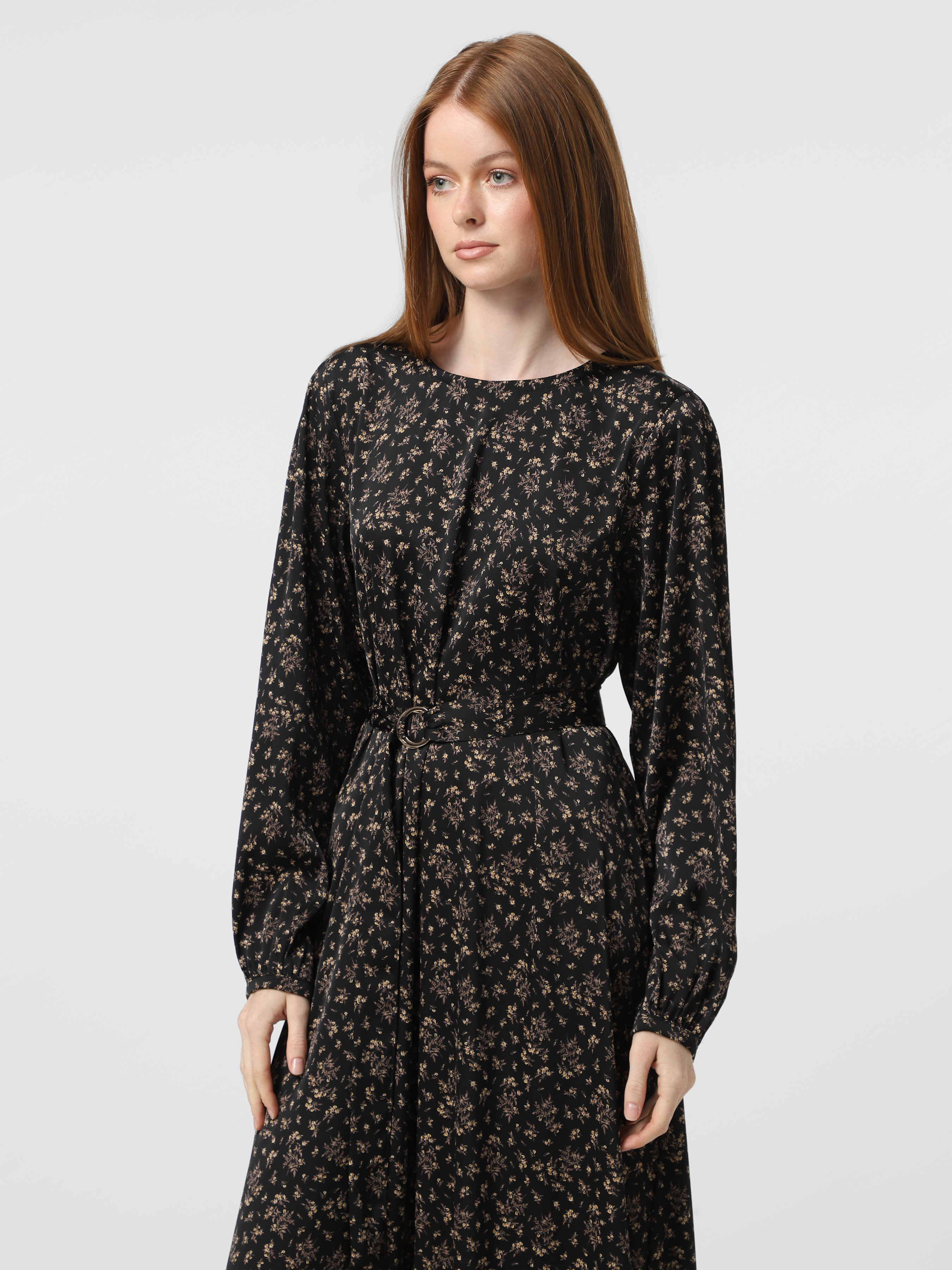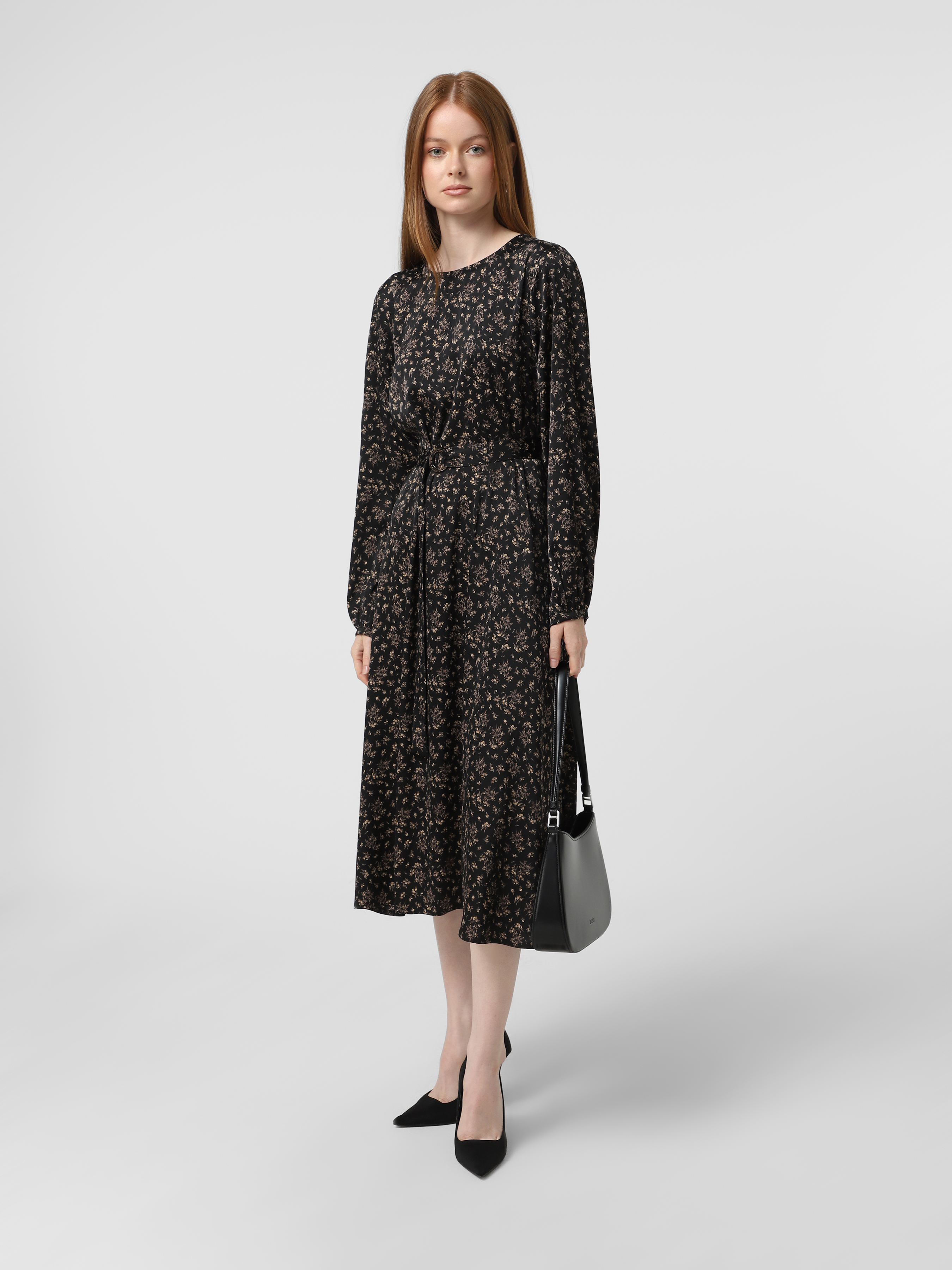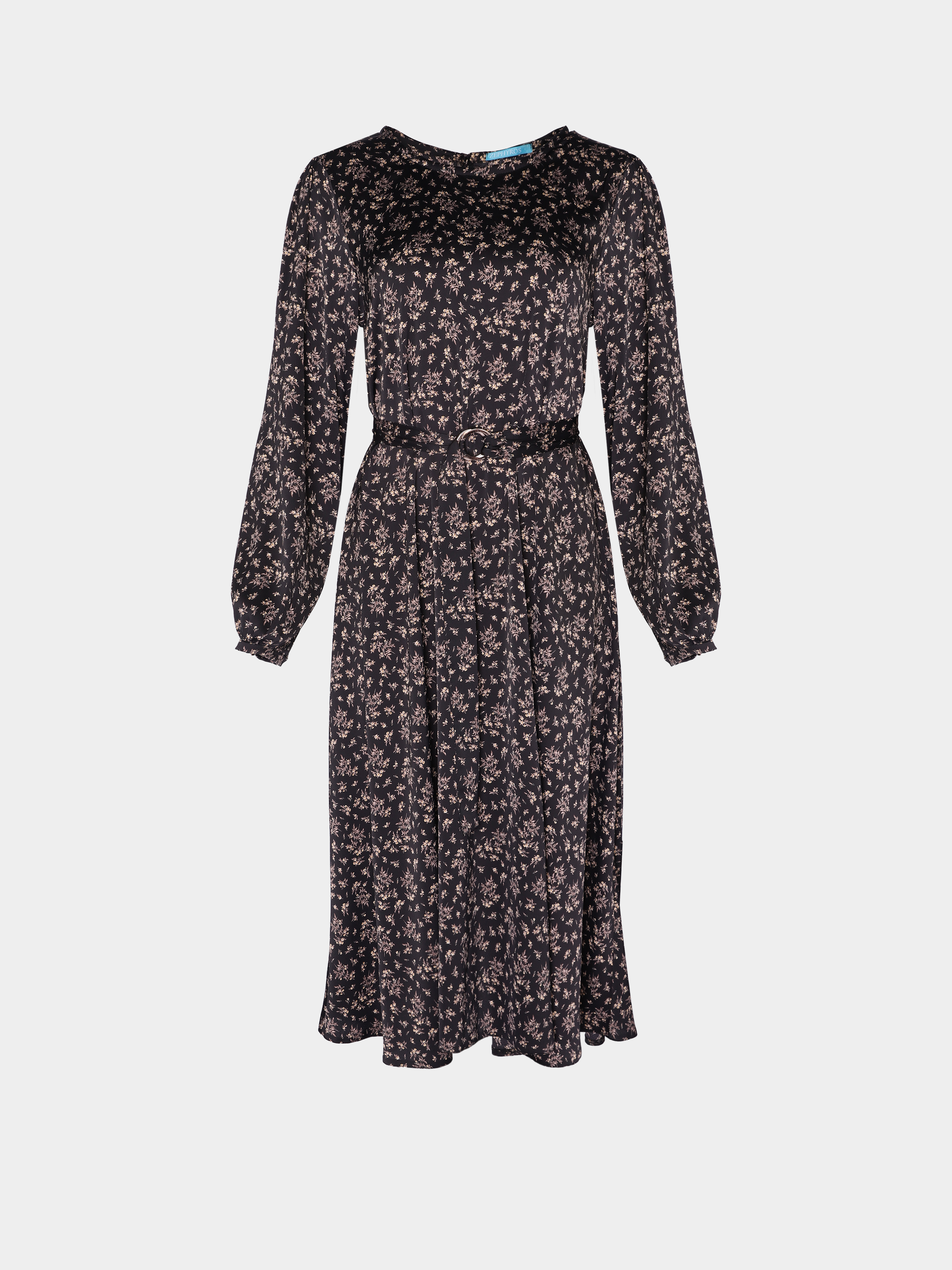 Чорна квіткова сукня з поясом