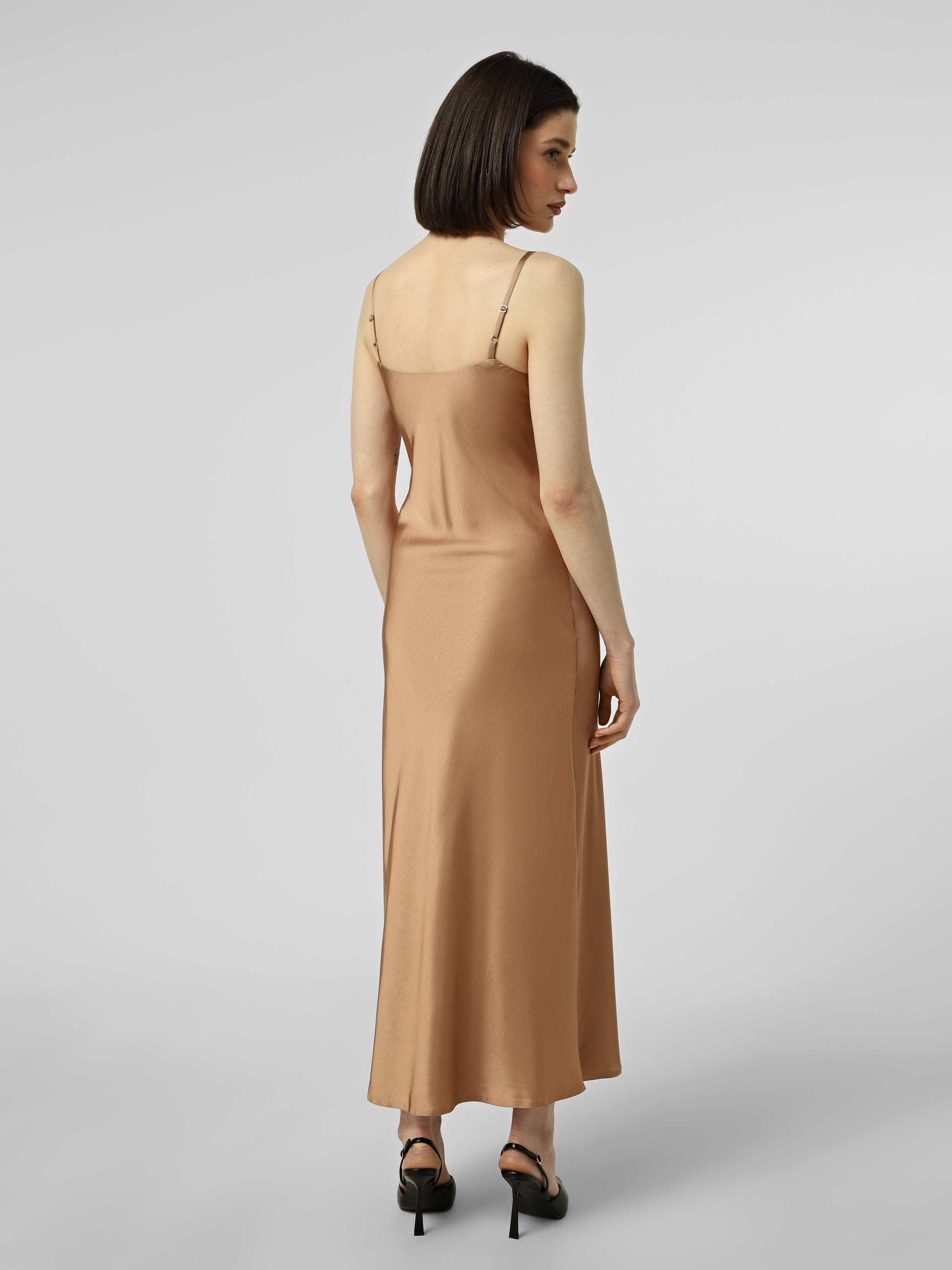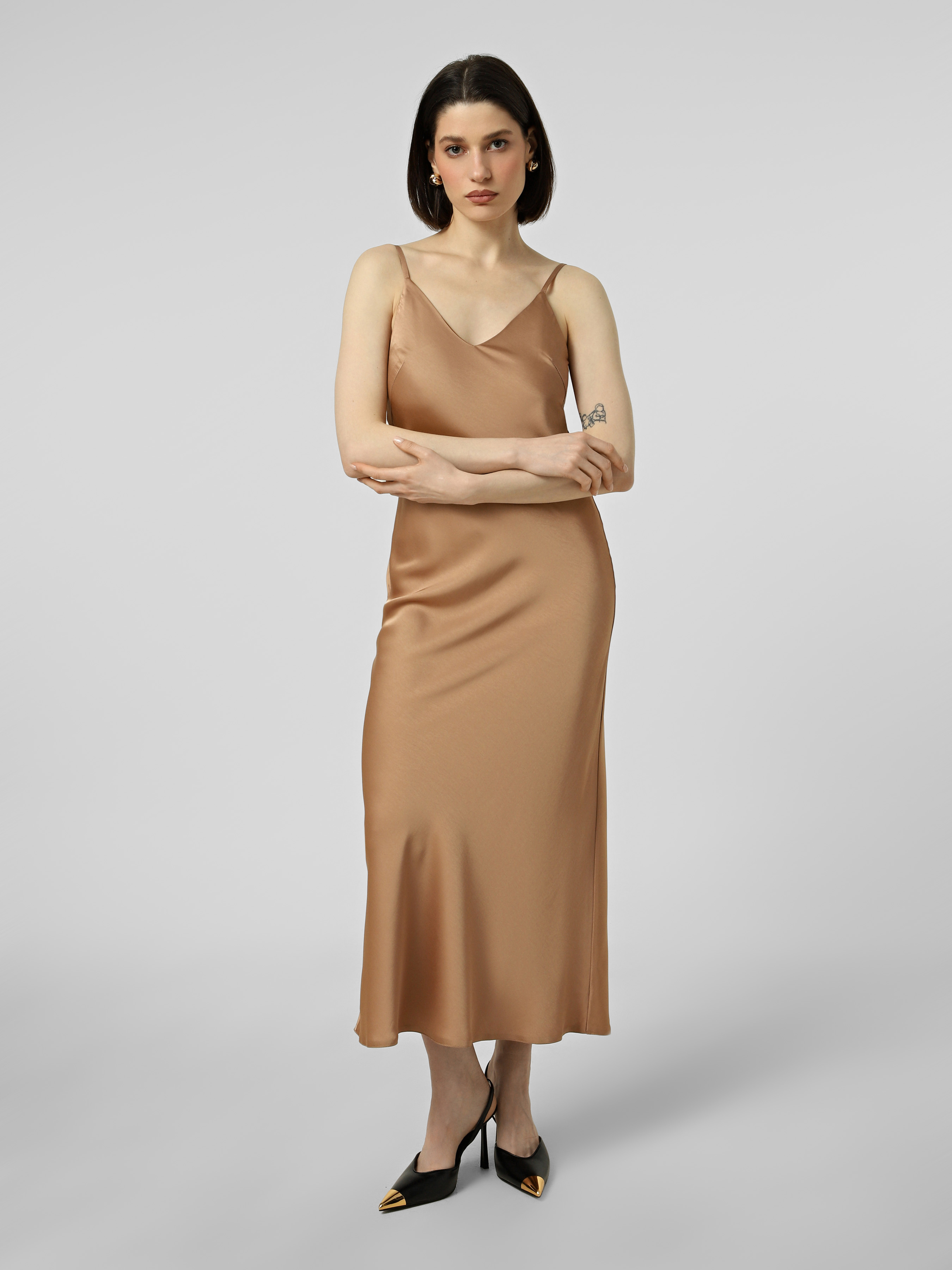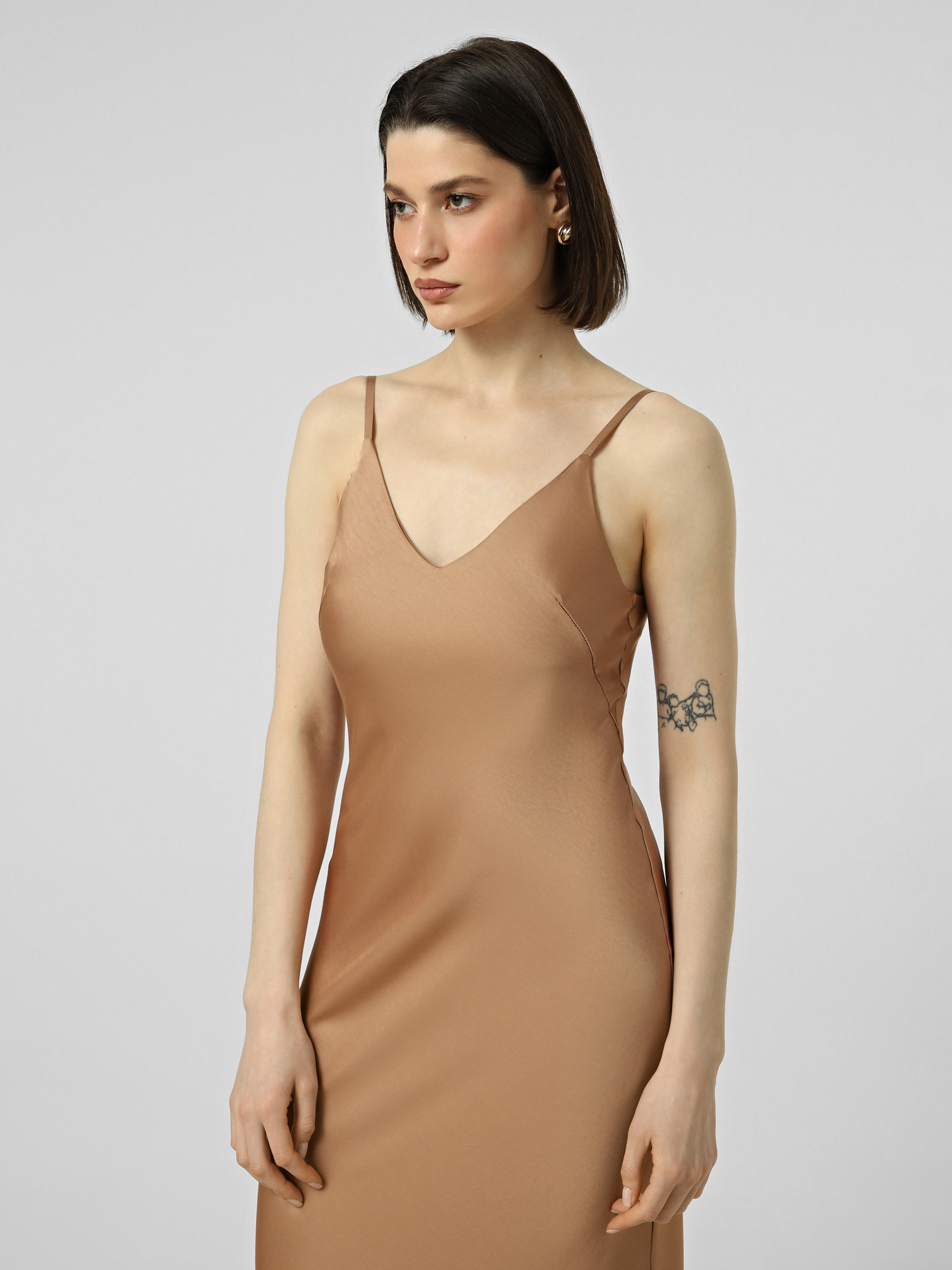Кремова сукня slip dress з віскози на регульованих бретелях, приталеної форми, довжина міді.
