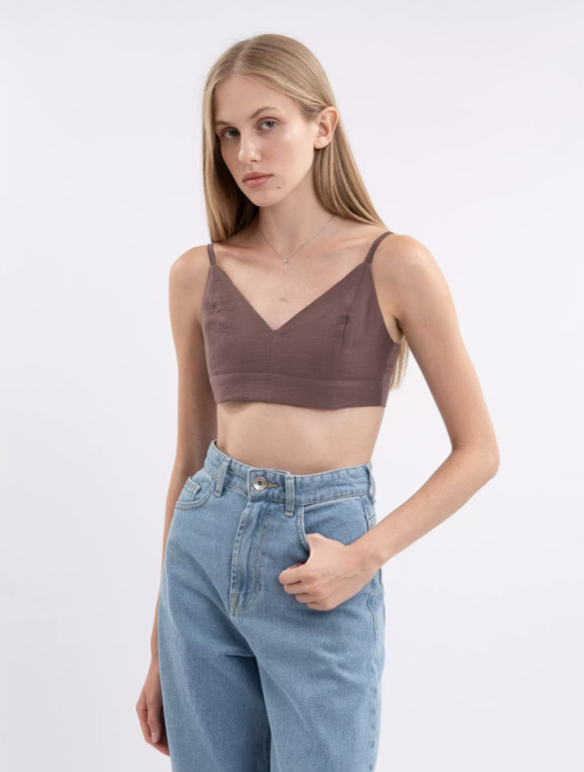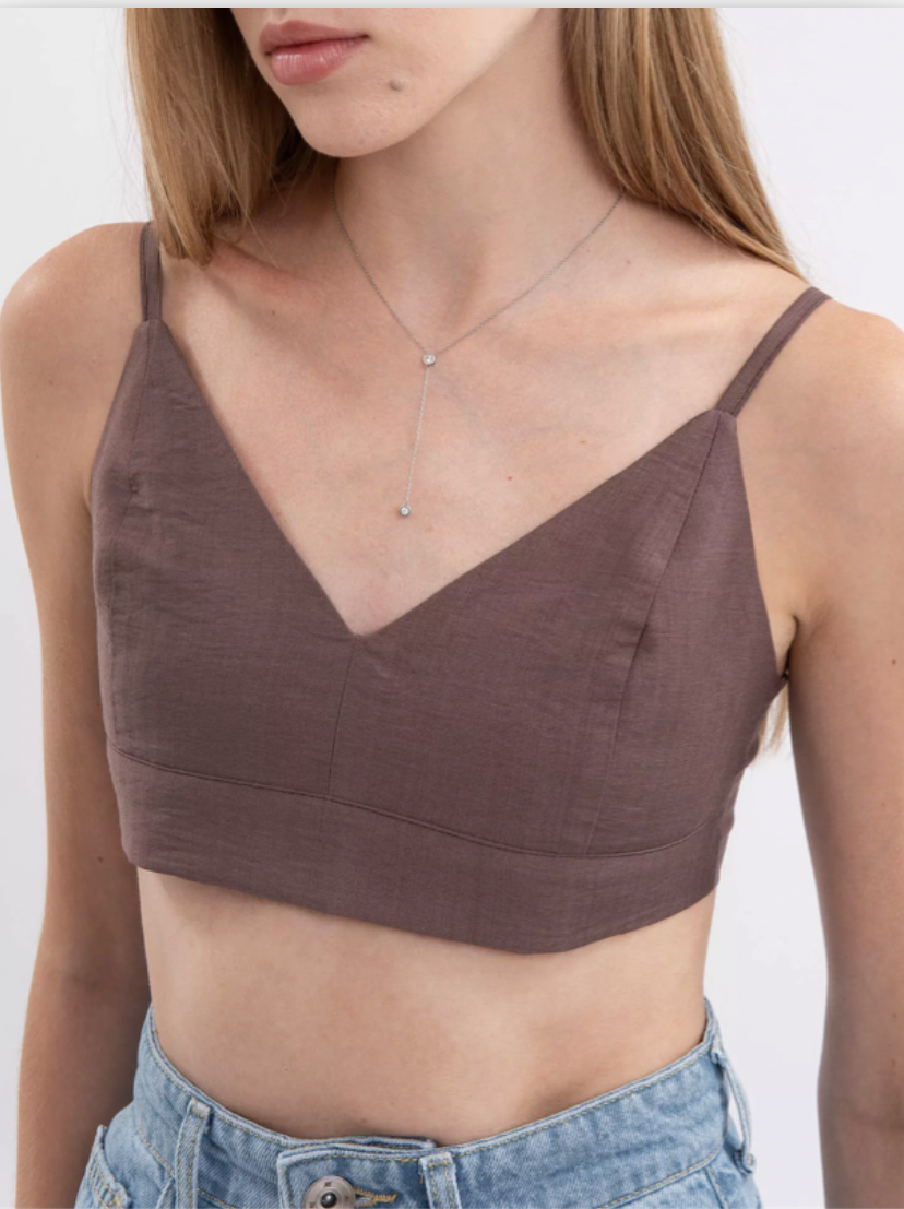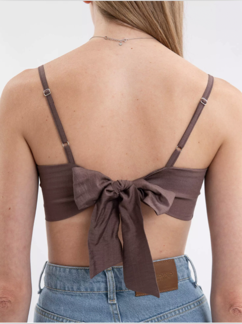Кроп-топ з віскози Мокко на регульованих бретелях, з зав'язками ззаду.