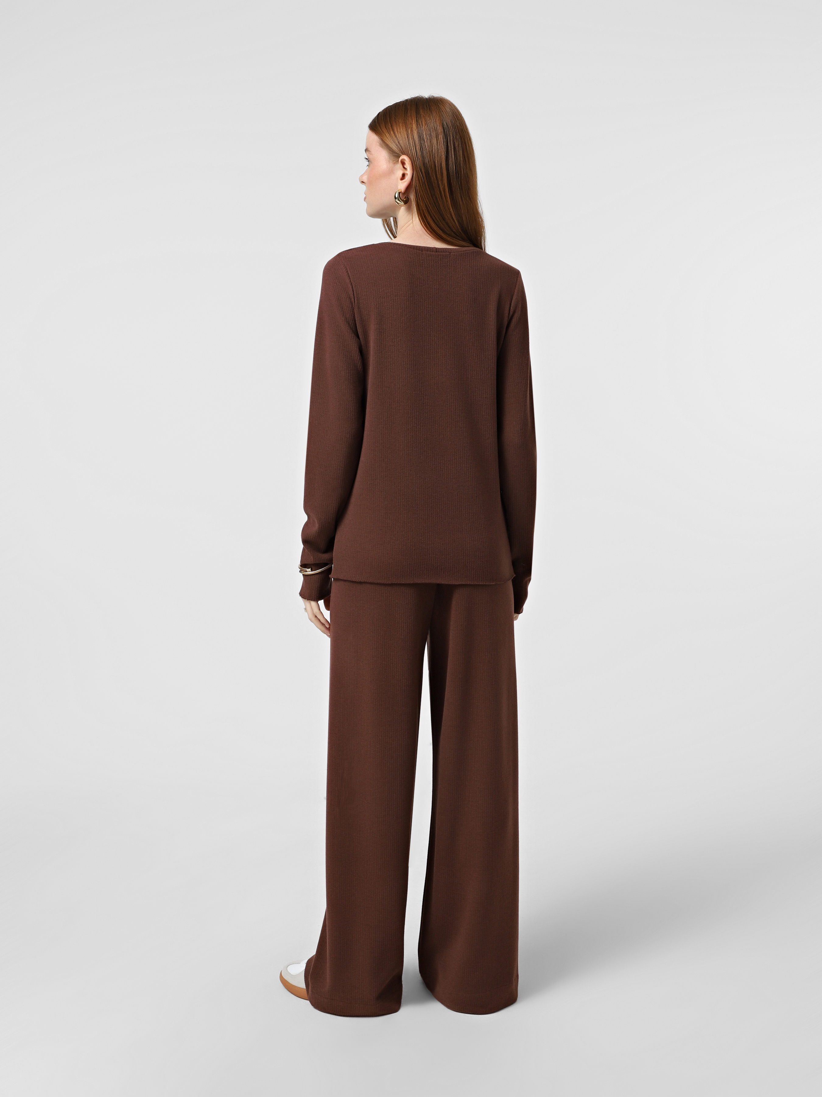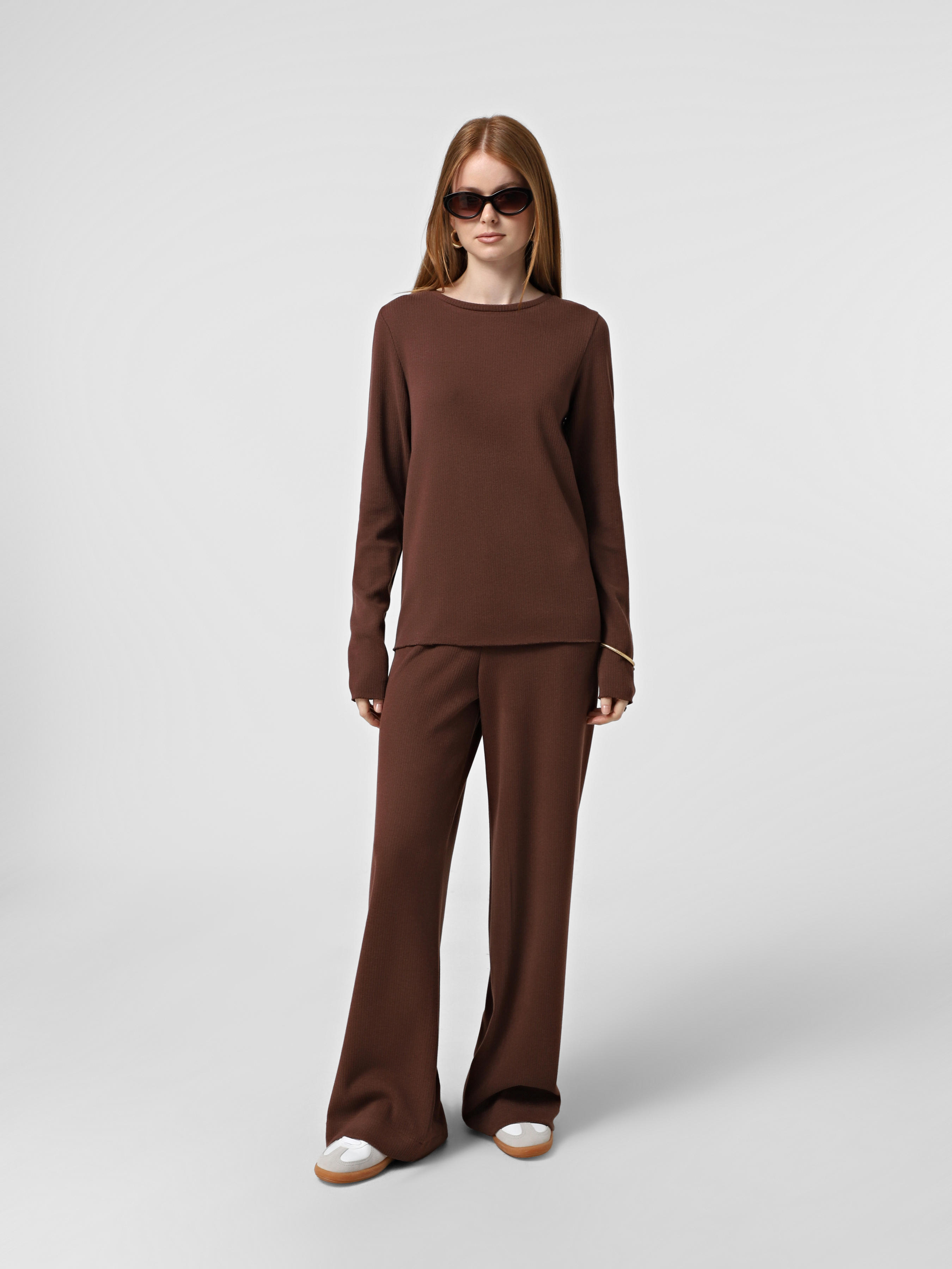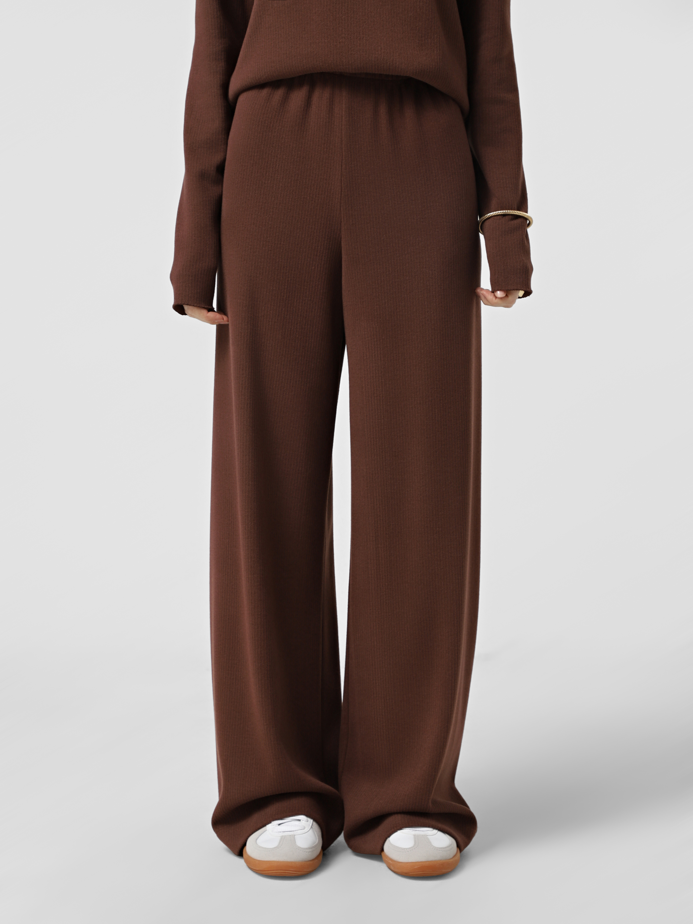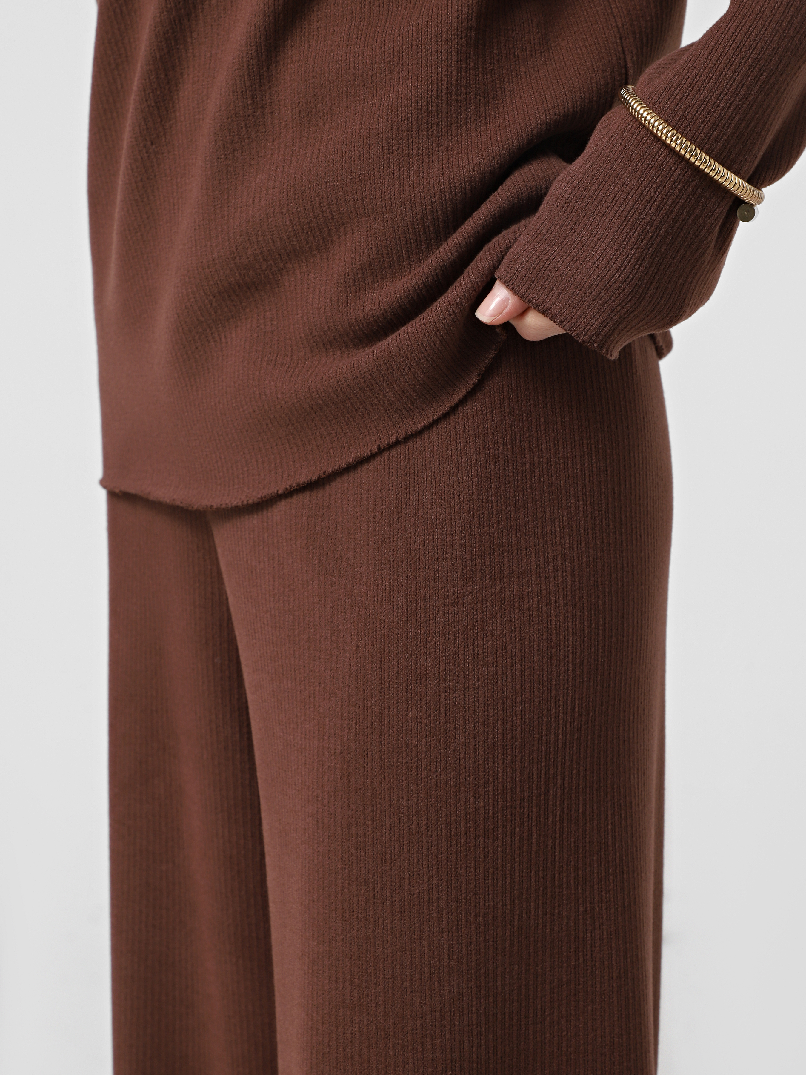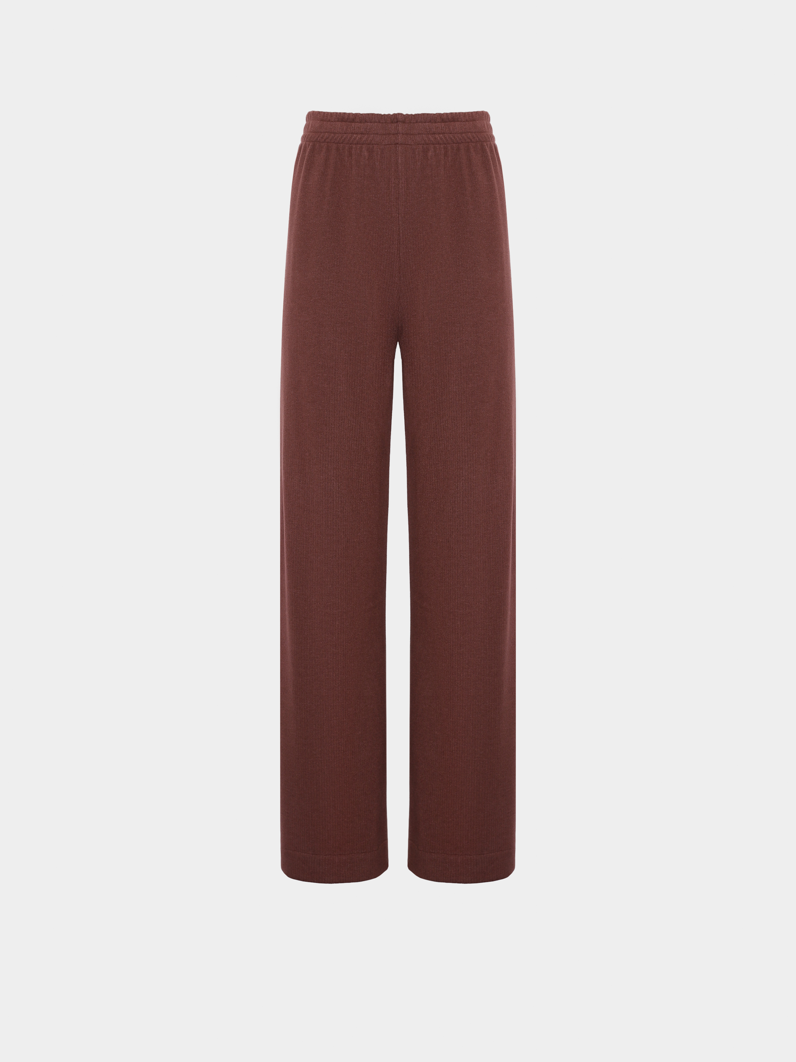 Штани з м'якого трикотажу теракотового відтінку, на резинці, прямого крою.