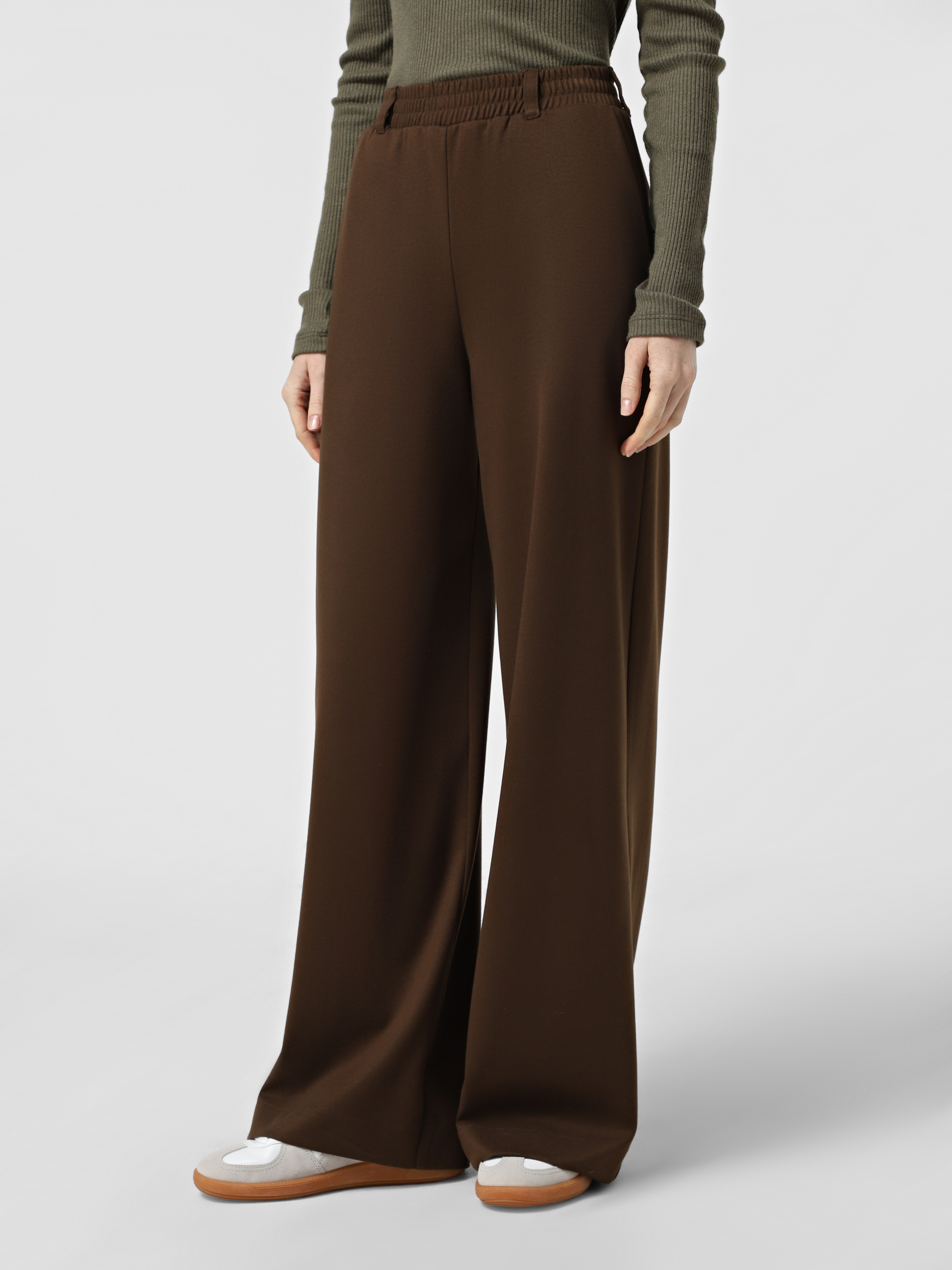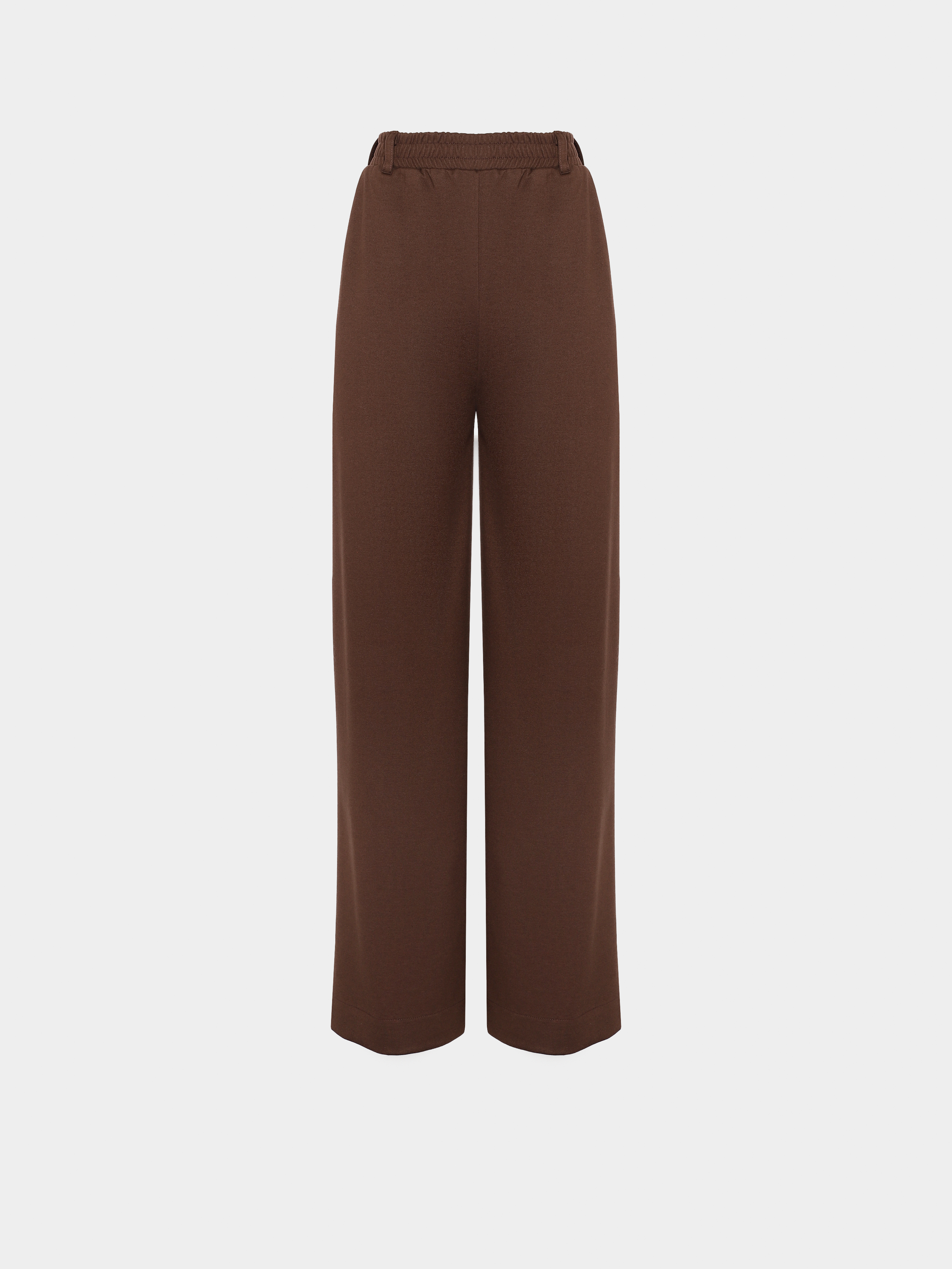 Штани з м'якого коричневого трикотажу, на резинці, прямого крою.