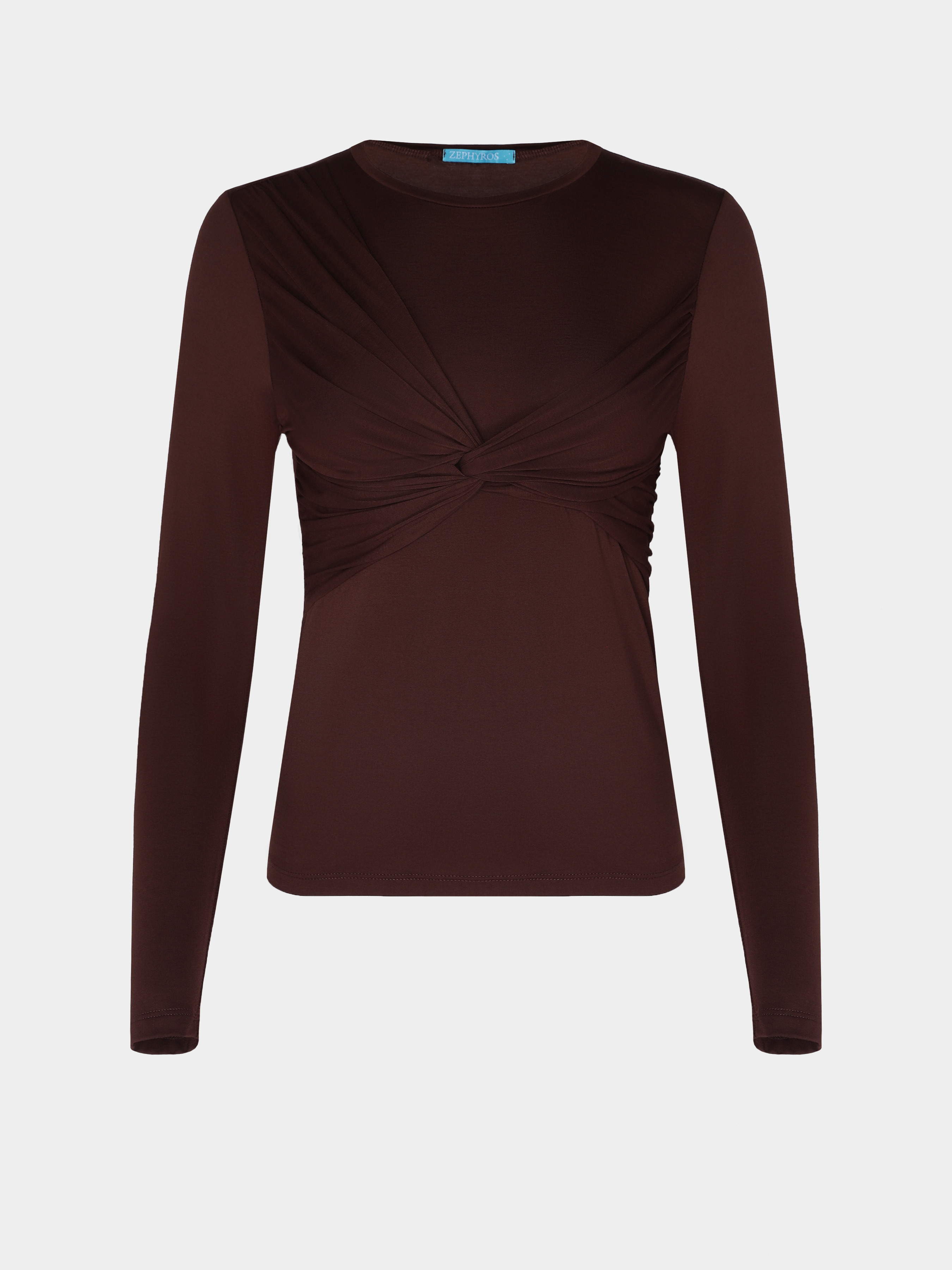 Шоколадний лонгслів з віскози Ballerina, приталеного силуету, з довгими рукавами.