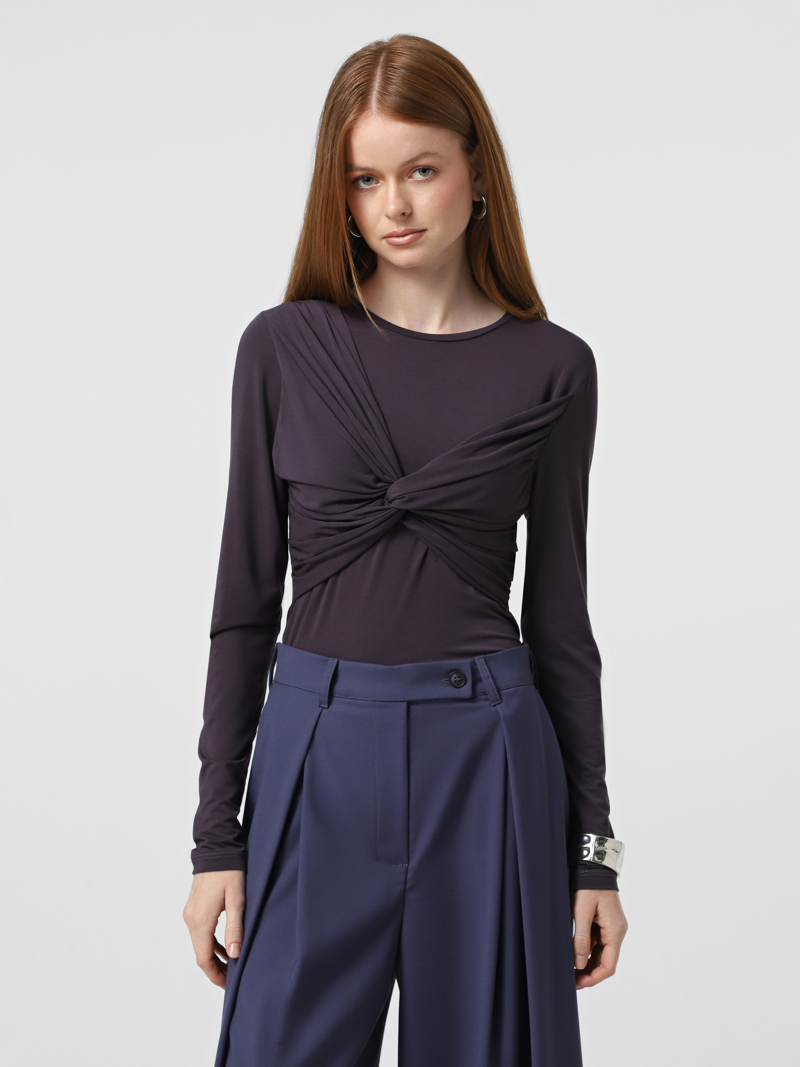Чорничний лонгслів з віскози Ballerina, приталеного силуету, з довгими рукавами.